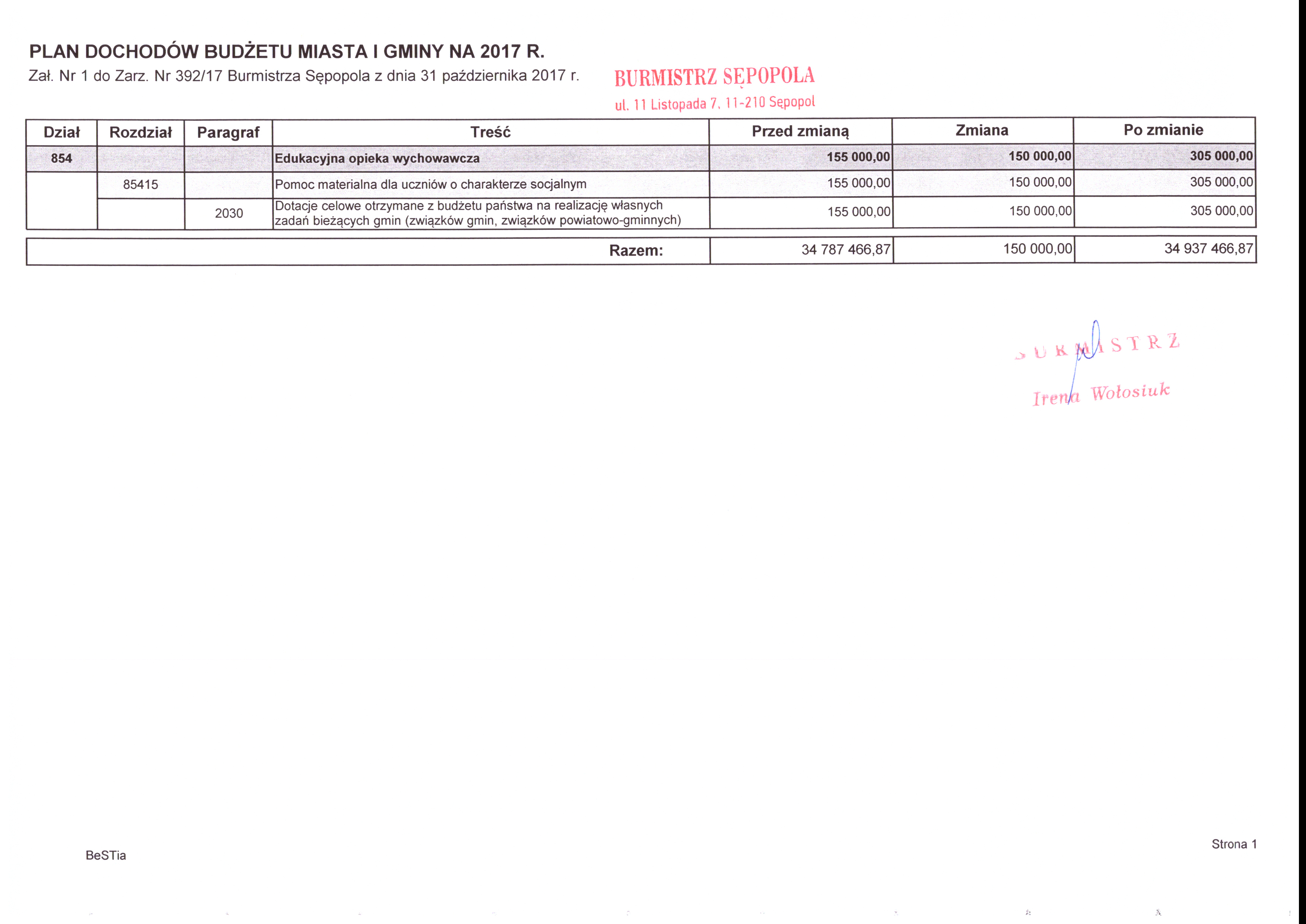 w sprawie zmian w budżecie miasta i gminy na 2017 r.