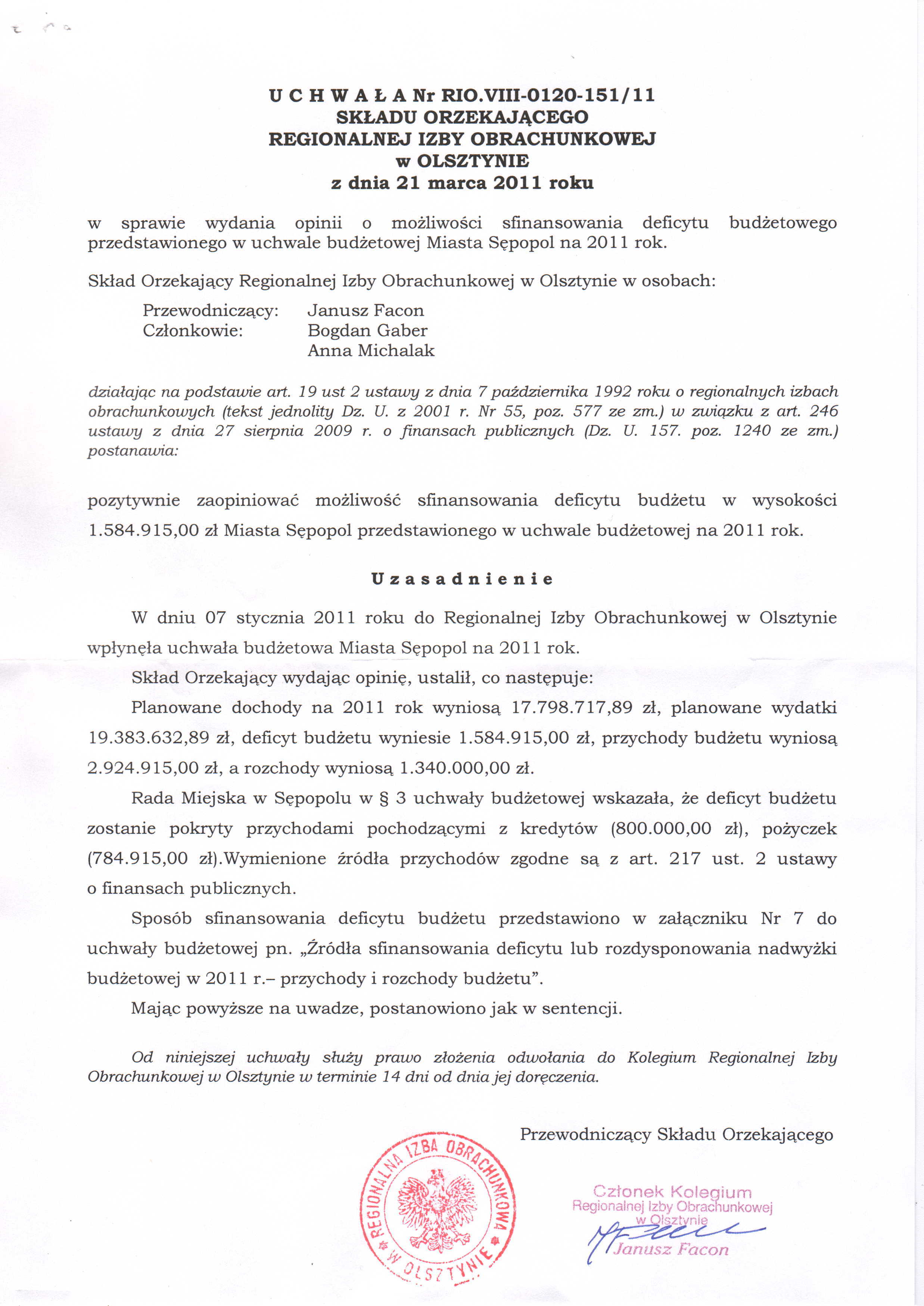 a) Regionalnej Izbie Obrachunkowej, celem zaopiniowania