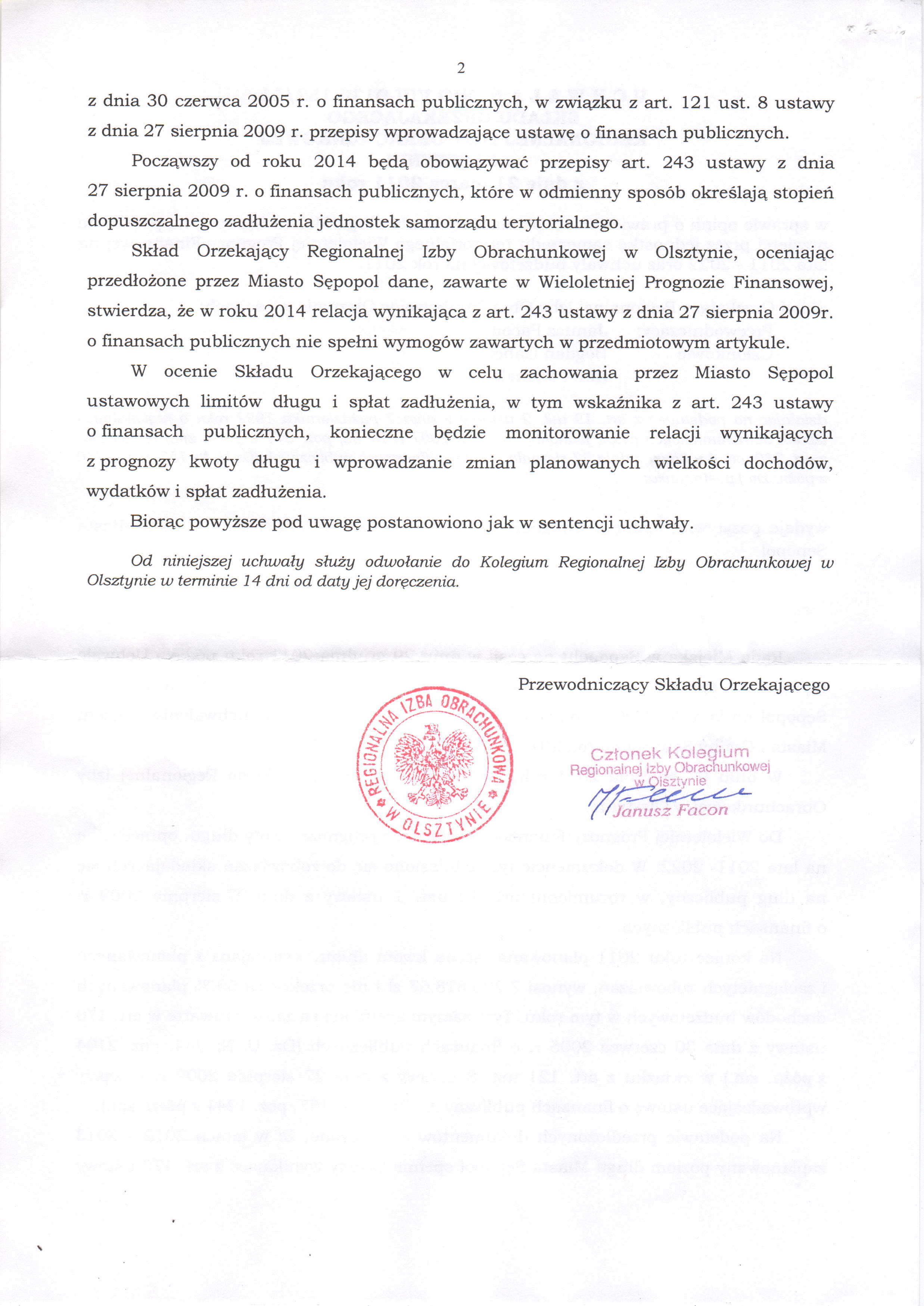 Przyjąć prognozę kwoty długu i spłat zobowiązań na lata 2011–2022, zgodnie z Załącznikiem Nr 2 do Uchwały.