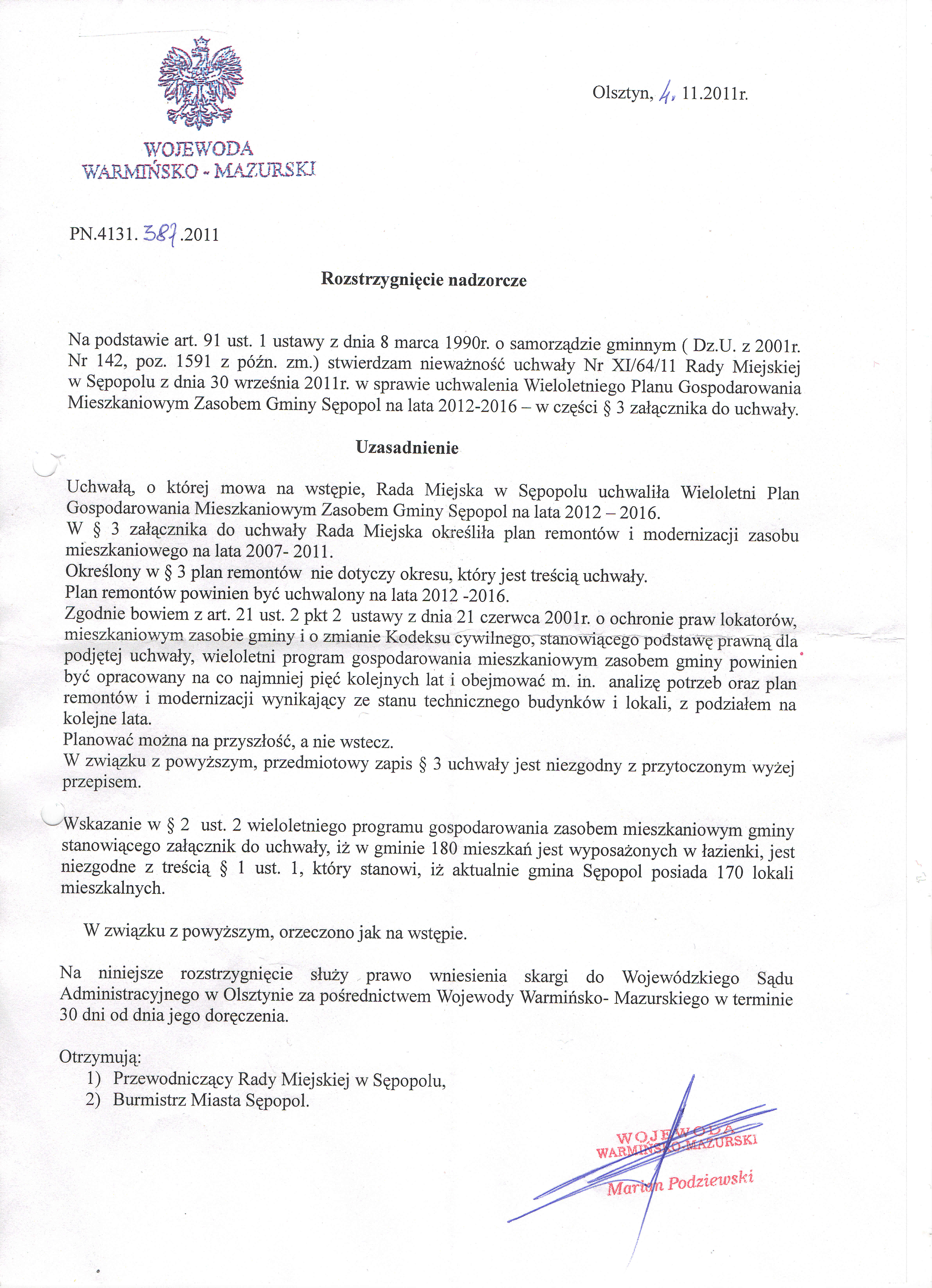 Rozstrzygnięcie nadzorcze Wojewody