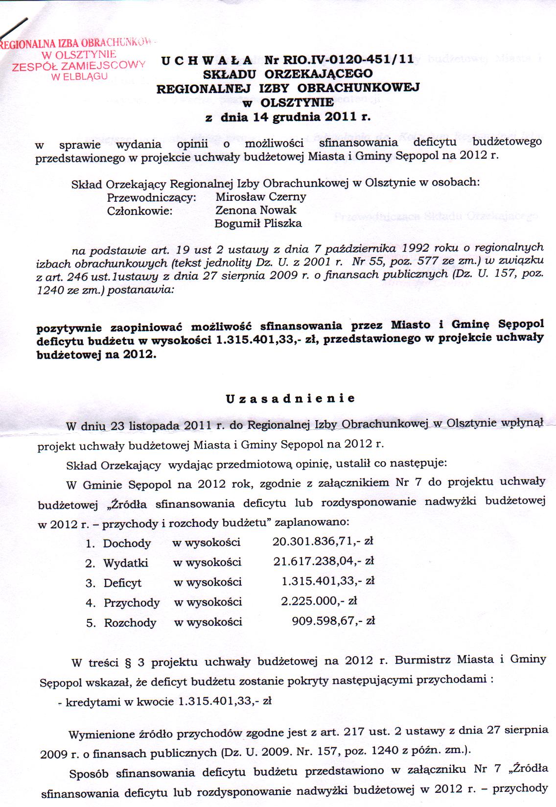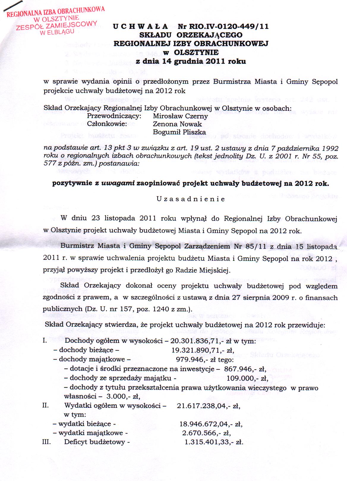 Uchwała RIO w spr.uchwały budżetowej na 2012r.-str.1