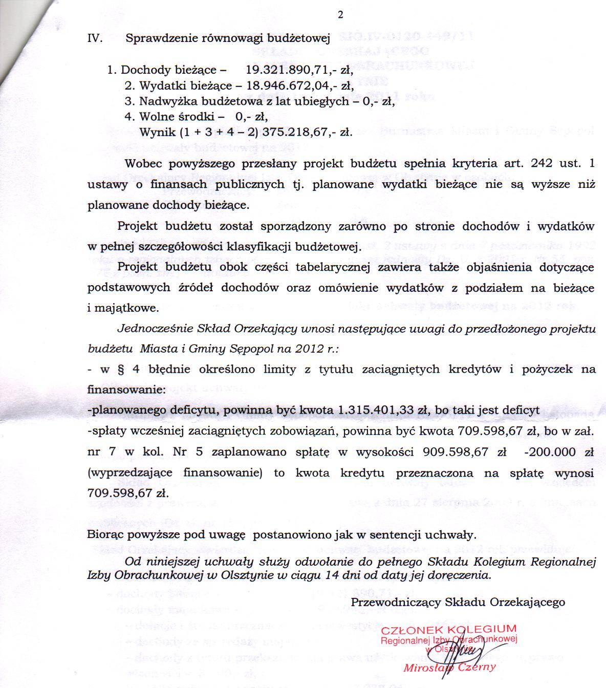 Uchwała RIO w spr.uchwały budżetowej na 2012r.-str.2