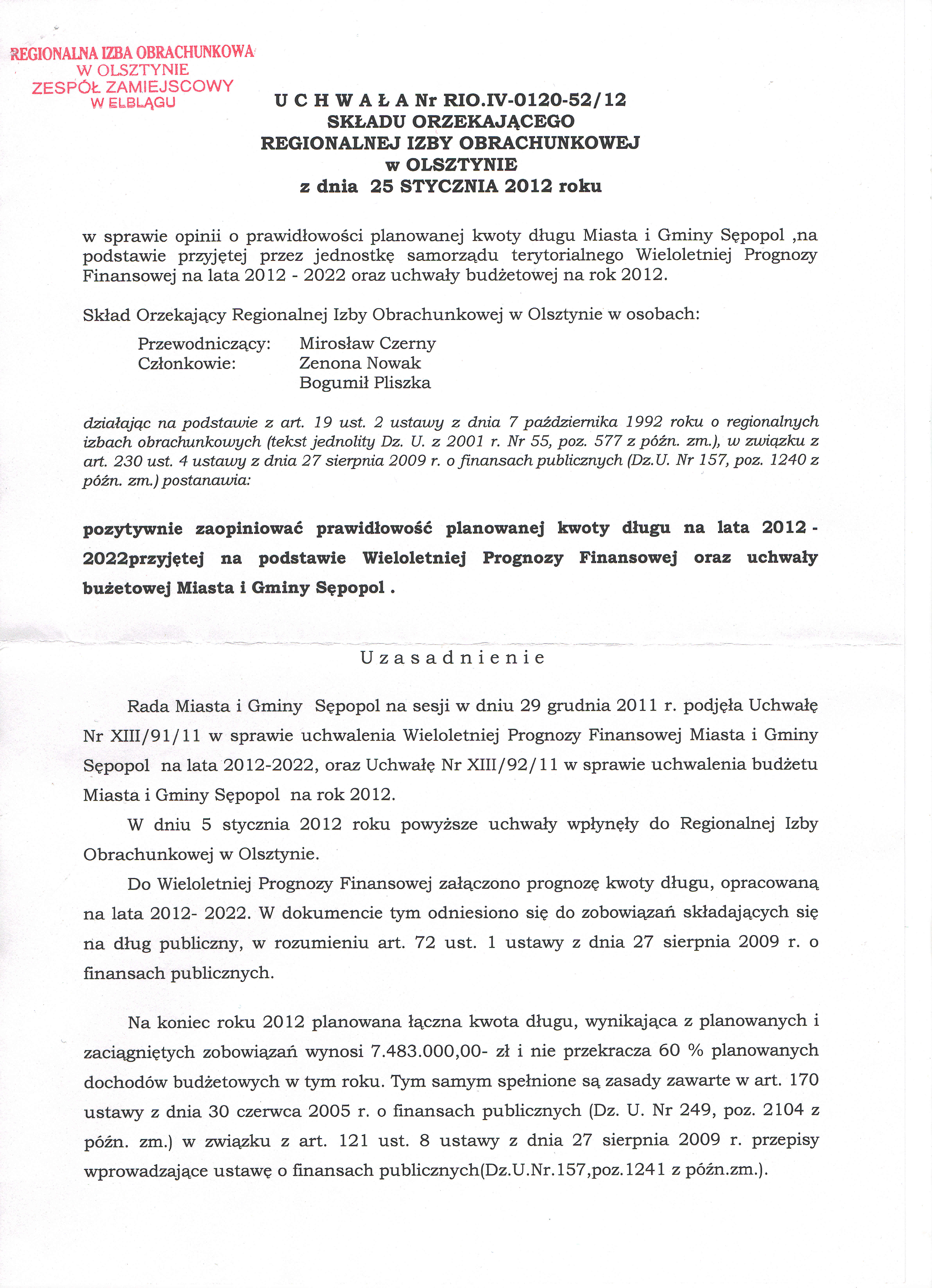 Uchwała RIO w Olsztynie z dnia 25 stycznia 2012 r.