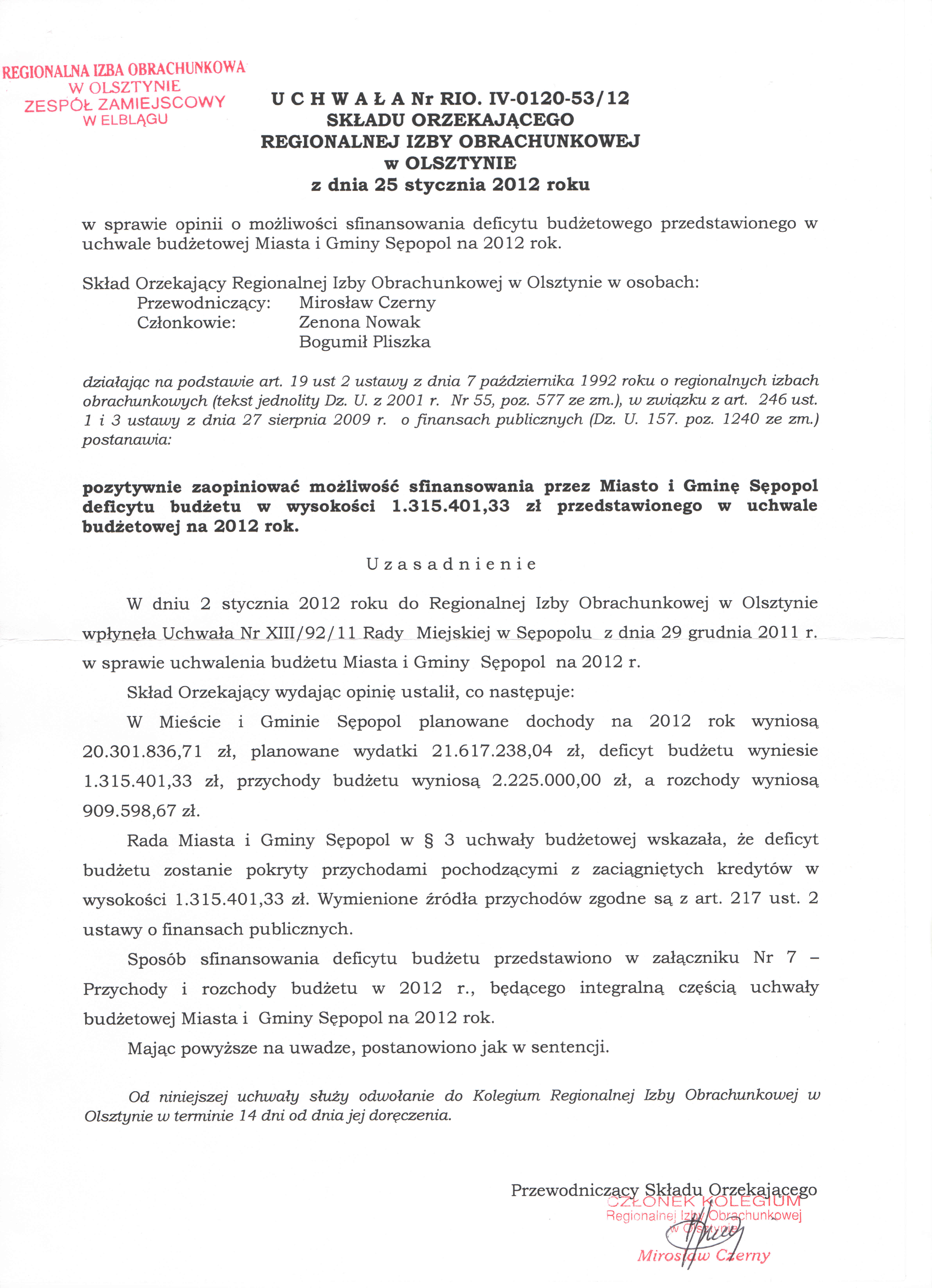 Uchwała RIO w spr. deficytu budżetowego na 2012 r.