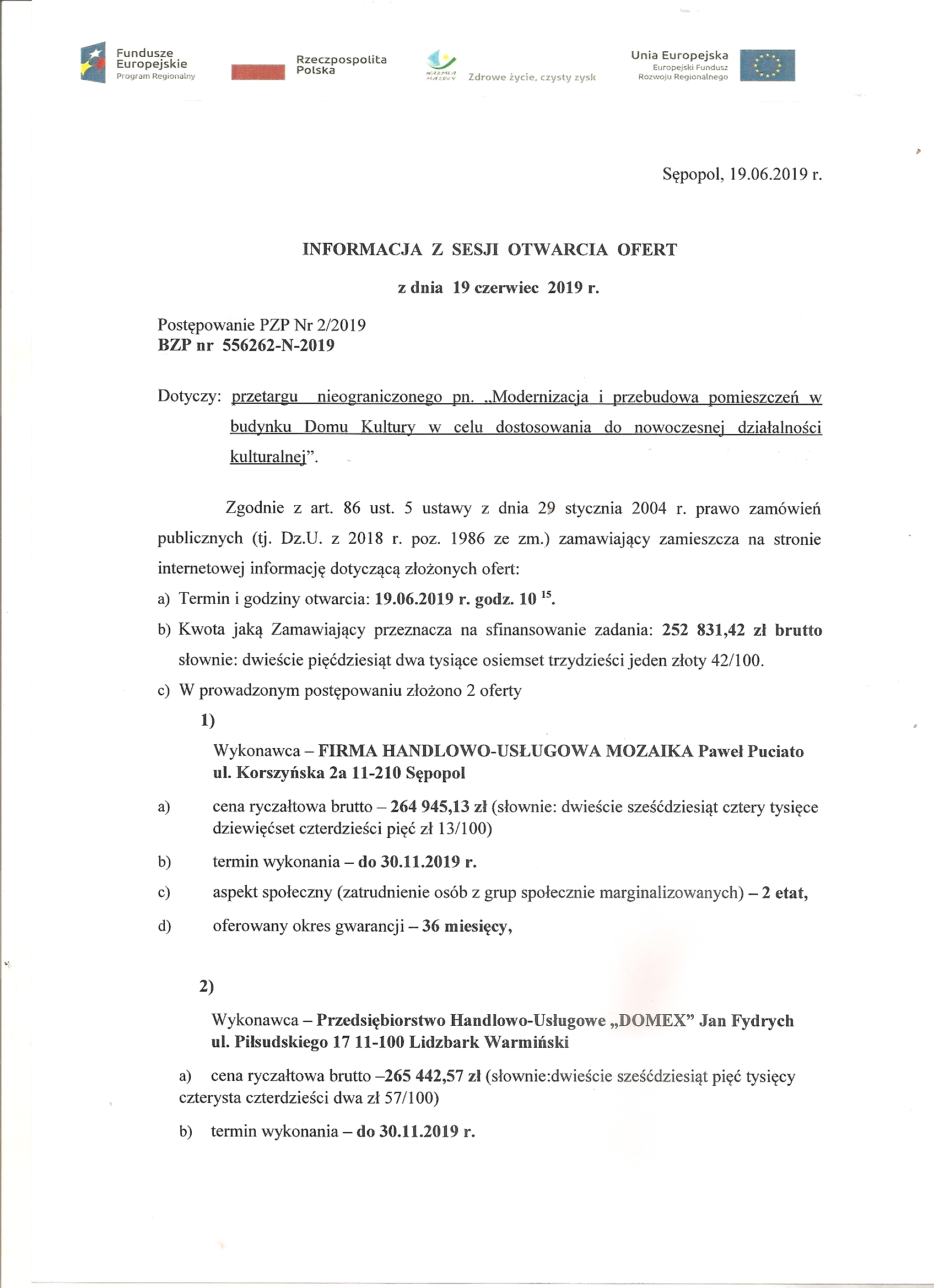 Modernizacja i przebudowa pomieszczeń w budynku Domu Kultury w Sępopolu w celu dostosowania ich do nowoczesnej działalności kulturalnej.